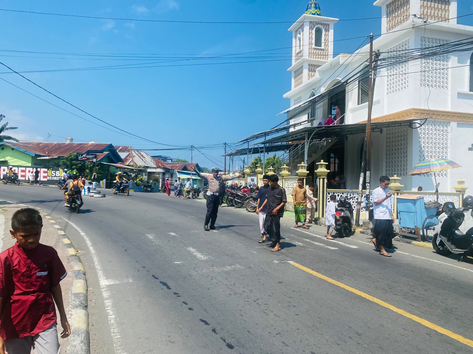 Personel Polres Ende disiagakan di sejumlah titik masjid untuk mengatur arus lalu lintas, menjaga ketertiban, serta mengantisipasi potensi gangguan kamtibmas selama pelaksanaan ibadah berlangsung.