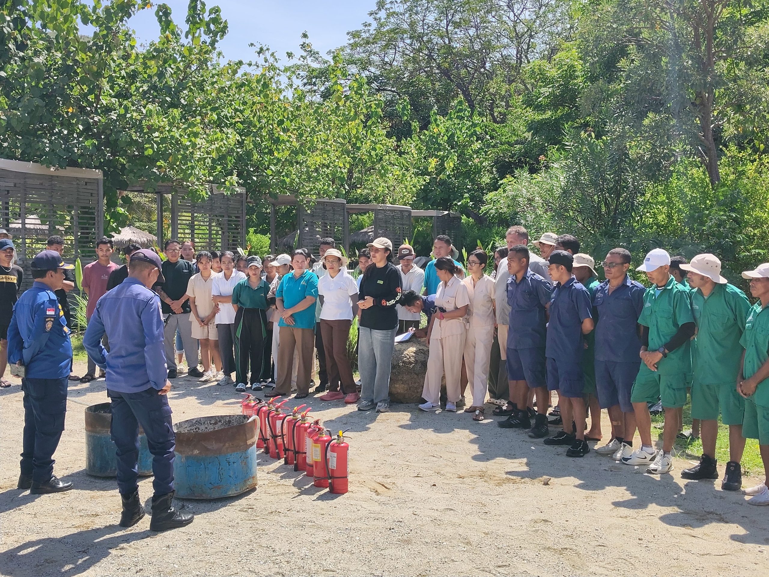 LABUAN BAJO – Satuan Polisi Pamong Praja (Satpol PP) Kabupaten Manggarai Barat, Bidang Damkar, melaksanakan sosialisasi dan simulasi penanggulangan kebakaran untuk seluruh staf Resort Menjaga Bay di Kecamatan Komodo, pada Kamis (5/2/).